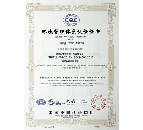 ISO14001是環境管理體系認證的代號。ISO14001系列標準是由國際標準化組織制訂的環境管理體系標準。是順應國際環境保護的發展趨勢,依據國際經濟貿易發展的需要而制定的。ISO14001:2015環境管理體系的順利通過,進一步證明了公司作為石化企業的運轉環保合規性及各個產品的節能降耗性,為后續市場推廣,提供了更有力保障。