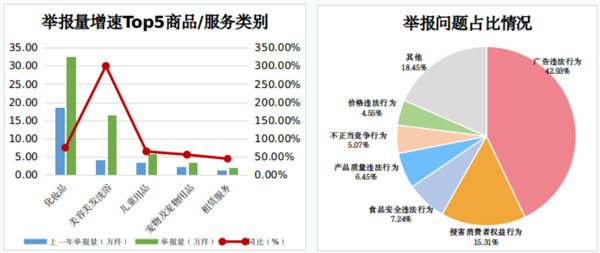 市場監管部門堅持民生導向,強化對投訴舉報問題的分析研判,依法嚴厲查處違法違規行為。針對廣告違法、虛假宣傳等舉報立案28.11萬件;針對侵害消費者權益行為舉報立案6.3萬件,主要涉及銷售不符合安全要求產品、假冒偽劣、欺詐消費者等;針對食品安全違法舉報立案4.87萬件。