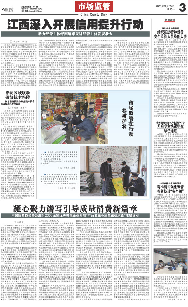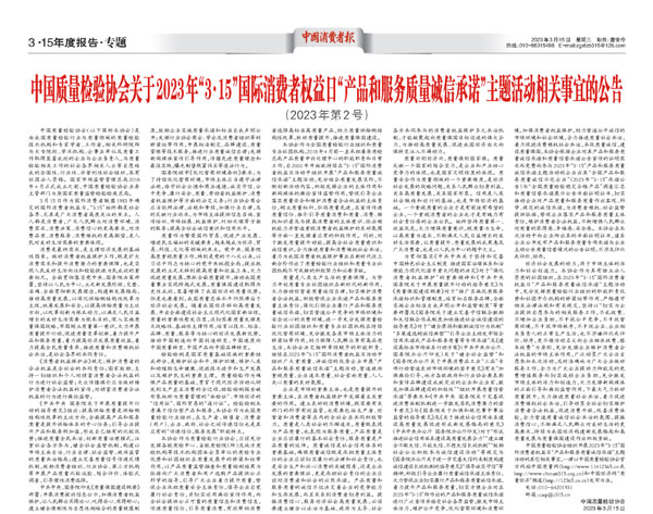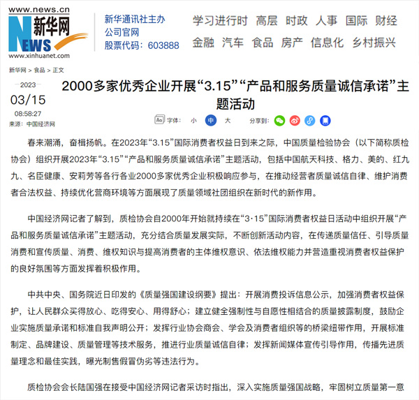 傳遞質量信任 提振消費信心 合力推進高質量發展啟新章——中國質量檢驗協會組織2000多家優秀典范企業開展“3.15”產品和服務質量誠信承諾活動