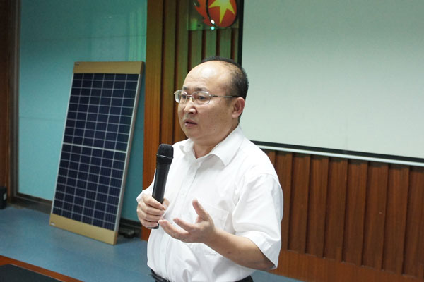 五星公司董事長胡廣良首先與大家分享了國家能源局下發(fā)的《關(guān)于報(bào)送整縣(市、區(qū))屋頂分布式光伏開發(fā)試點(diǎn)方案的通知》文件精神。胡董告訴大家,國家能源局文件中已明確,黨政機(jī)關(guān)建筑屋頂總面積可安裝光伏發(fā)電比例不低于50%;學(xué)校、醫(yī)院、村委會(huì)等公共建筑屋頂總面積可安裝光伏發(fā)電比例不低于40%;工商業(yè)廠房屋頂總面積可安裝光伏發(fā)電比例不低于30%;農(nóng)村居民屋頂總面積可安裝光伏發(fā)電比例不低于20%。光伏迎來了歷史性的大發(fā)展機(jī)遇,面對(duì)新的機(jī)遇和挑戰(zhàn),我們應(yīng)牢牢抓住機(jī)遇,迎難而上,憑借自身的技術(shù)、生產(chǎn)、工程、服務(wù)優(yōu)勢,投資建設(shè)出更多、更優(yōu)質(zhì)的光伏電站。