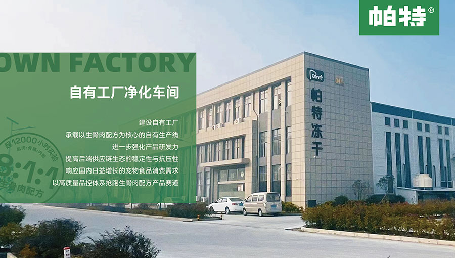 帕特成立于2016年,是一家專注寵物營養健康的高端寵物食品企業。自成立以來,秉持著人寵平等陪伴的品牌宗旨,帕特致力于研發更天然、更友好的寵物食品。帕特推出的“生骨肉配方”科學喂養理念貼近犬貓原生態飲食習慣和營養結構,能夠有效幫助寵物健康成長、長久陪伴在我們身邊。帕特以「8:1:1生骨肉配方」為產品核心理念,推出一系列生骨肉配方產品,從頂尖的生骨肉凍干到生骨肉配方主食罐、主糧、零食等,致力于為消費者提供可靠高質的中國制造寵物食品。
