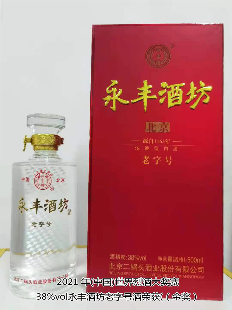北京二鍋頭公司現有員工400余人,凈資產超億元,京王子酒、醉流霞酒、永豐二鍋頭等系列產品300余種。公司產品多次獲得各種優質產品稱號,“永豐牌”商標2000年度、2004年度、2007年度連續三屆被北京市工商行政管理局認定為北京市著名商標;2003年9月“永豐”二鍋頭、京王子酒被評為北京市優秀新產品獎,2004年10月被授予“中國白酒質量優秀產品”稱號。2004年11月被授予首都市場“質量、信譽、服務”優秀企業、優質產品稱號;2006年11月被中國詩酒文化協會、酒文化專業委員會評為“中國歷史文化名酒”;2007年12月在中國釀酒工業協會組織的企業信用狀況評價中,被評為“AAA”級信用企業,同年榮獲“中國質量過硬知名品牌”;2010年被北京老字號協會評為“北京老字號”企業;2011年5月被中華人民共和國商務部授予“中華老字號”企業;2015年52度永豐酒坊老字號榮獲比利時布魯塞爾國際烈酒大獎“金獎”;2019年43度大師印象榮獲比利時布魯塞爾國際烈酒大獎“銀獎”;2021年度國際烈酒(中國)大獎賽。公司選送的四款產品榮獲“金獎”,他們是52度瓷瓶醉流霞酒、46度大師品簽酒、50度粱大俠(典藏)酒、38度永豐酒坊老字號酒、42度永豐二鍋頭酒(國運)一款產品榮獲“大金獎”,永豐酒坊(1163)52度酒榮獲2022年國際烈酒(中國)大獎賽“金獎”,永豐52度(神龍御品)酒、醉流霞35度(精品)酒分別榮獲兩枚銀獎。