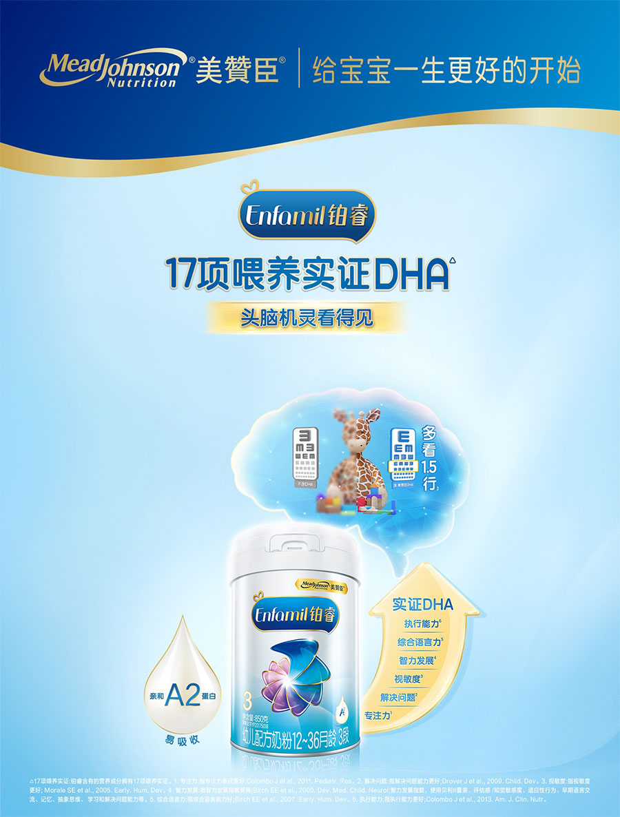 百年以來,美贊臣始終以巨大的熱情投入科研創(chuàng)新,并將其視為成就非凡的基石。專業(yè)的全球研發(fā)體系:美贊臣擁有以北美為中心,輻射歐洲、亞洲及拉美的全球研發(fā)體系。在美國、墨西哥、中國及新加坡分別設(shè)立了美贊臣嬰幼兒營養(yǎng)品研發(fā)中心。卓越的全球研發(fā)成果:美贊臣匯聚全球科研資源,專注且持續(xù)地進行嬰幼兒營養(yǎng)研究探索,為孩子成長的每一階段打造卓越和優(yōu)質(zhì)的營養(yǎng)品。