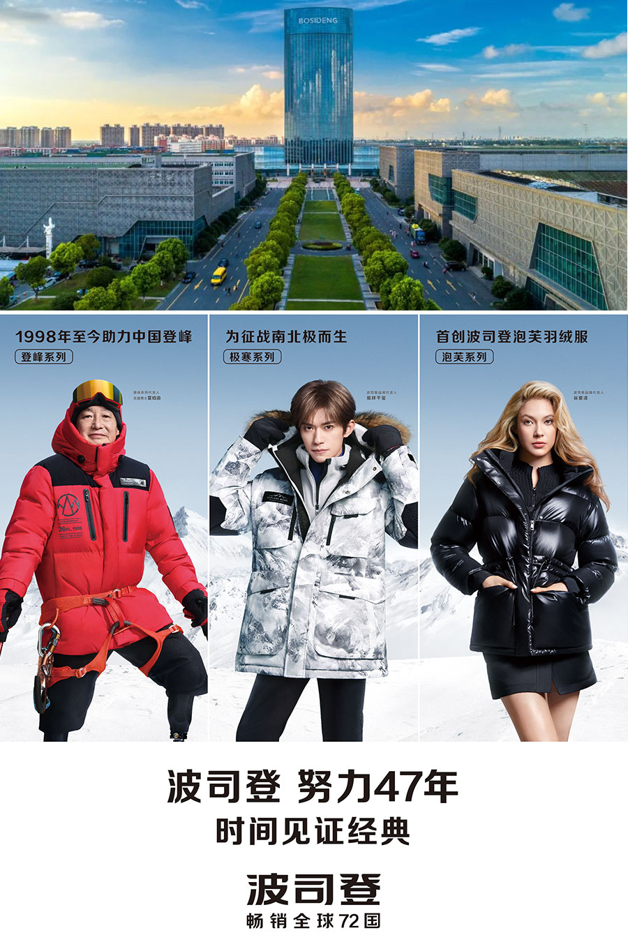 波司登集團始創于1976年,是全球知名的羽絨服裝品牌企業,旗下品牌包括波司登、雪中飛、冰潔等。主營產品羽絨服連續28年(1995-2022年)中國市場銷量第一,規模總量全球領先,為中國高端紡織及羽絨工業發展做出積極貢獻。公司位列中國制造業民營企業500強、中國民營企業500強。