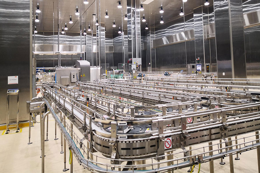 半固態寵物配合飼料生產線由粗粉設備、金屬探測器、細粉設備、自動配料系統、混合機、灌裝機、蒸煮床、滅菌釜、X光機等組成,梅特勒復檢秤等設備,全自動控制保證產品品質穩定的同時也大大減少了操作工人的工作強度。是與利樂公司商業戰略合作,打造國內第一條寵物主食濕糧生產線,采用密封灌裝的利樂佳包裝技術利樂,9層包裝產品,整條生產線耗資數億元,日產能達30噸。