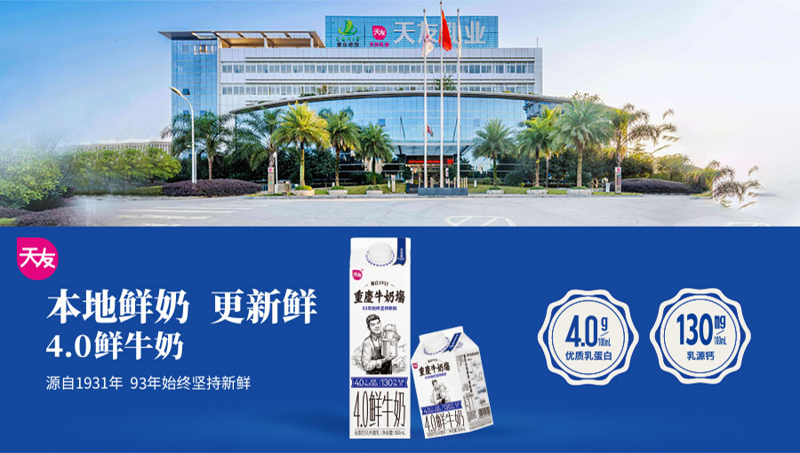 重慶市天友乳業股份有限公司始創于1931年,是一家具有93年歷史的專業乳制品全產業鏈企業。一直以成為“百年天友”為目標,始終以“成為最值得消費者喜愛的乳品領軍企業”為愿景。