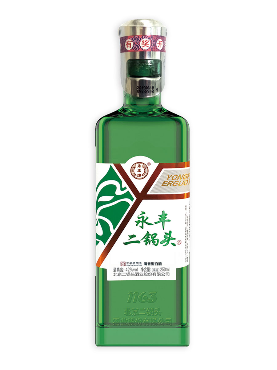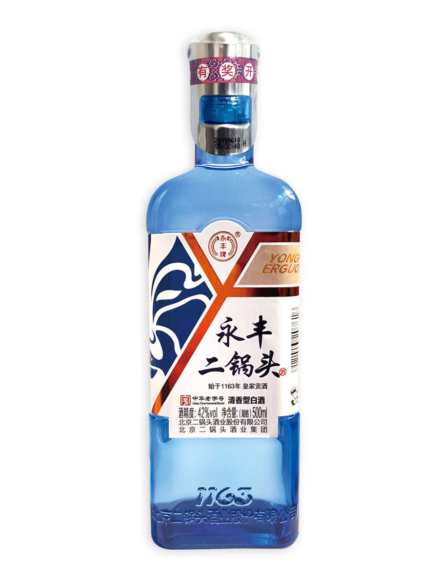北京二鍋頭公司秉承傳統釀造技藝,選用優質高粱為原料,以清香大曲為糖化發酵劑,采用老五甑工藝,清蒸清燒,掐頭去尾取中段,經長期儲存勾調而成。42度永豐二鍋頭2010年上市,其酒液清澈透明,綿甜醇厚,諸味諧調,尾凈悠長等特點,深受廣大消費者一致好評和青睞。46度、50度、56度永豐二鍋頭酒銷往全國各地,2021年全年銷售收入8.6億元,2022全年銷售收入突破10億元大關,真正實現了“釀成春夏秋冬酒,博得天涯海角名”,幾代人為之奮斗的夙愿。