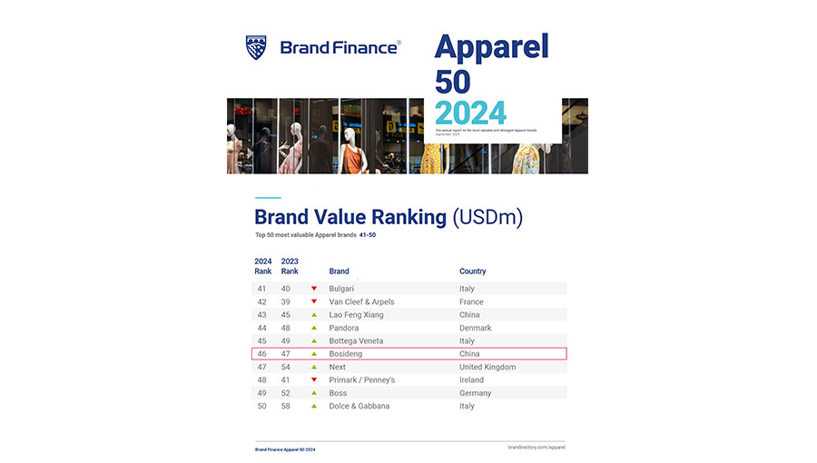 波司登是中國自主品牌實施品牌發展戰略的優秀代表,波司登獲得中國世界名牌產品、中國工業大獎等殊榮。波司登品牌蟬聯全球最有價值50強服飾品牌榜單,品牌認知和第一提及率均處于中國服裝行業領先地位。2024年品牌價值達1075.82億元。波司登獲得中國優秀工業設計獎金獎、ISPO全球設計大獎、德國紅點獎、美國IDEA設計獎等榮譽。