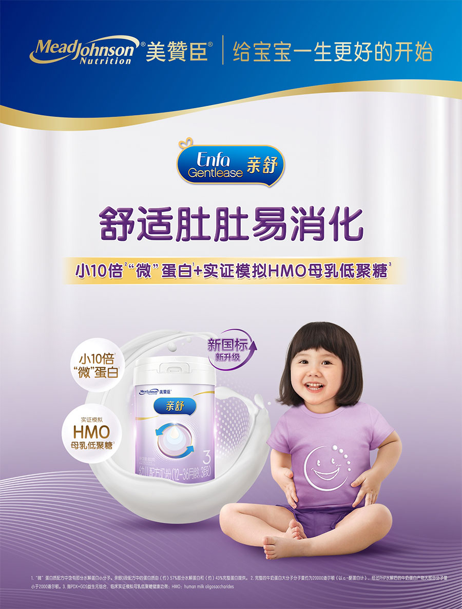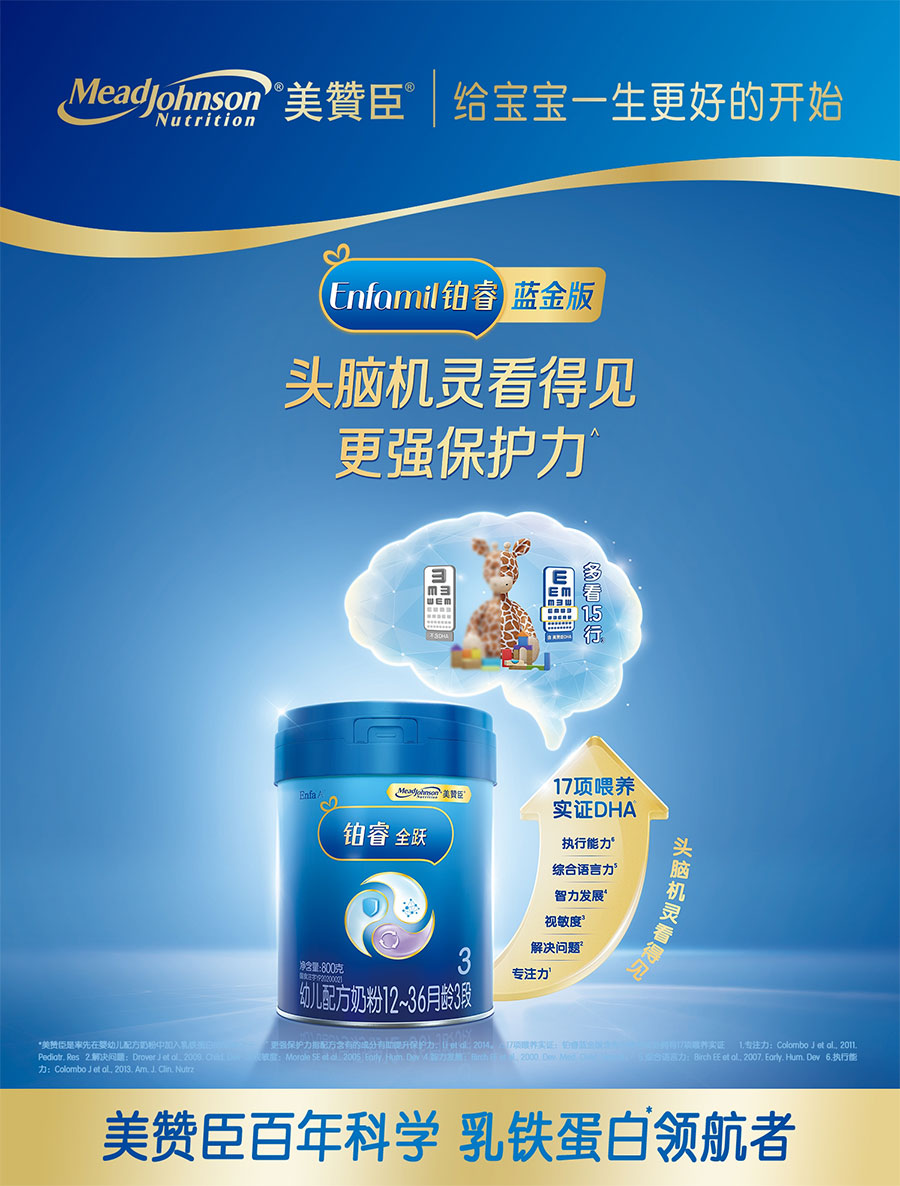 百年信賴,口碑卓越”。憑借卓越的品質,美贊臣贏得了營養學家和父母的廣泛信賴。其專注嚴謹的態度、持續不斷的創新、對卓越的不懈追求以及對社會的關懷回饋,使美贊臣屢獲贊譽,樹立了良好的品牌形象。