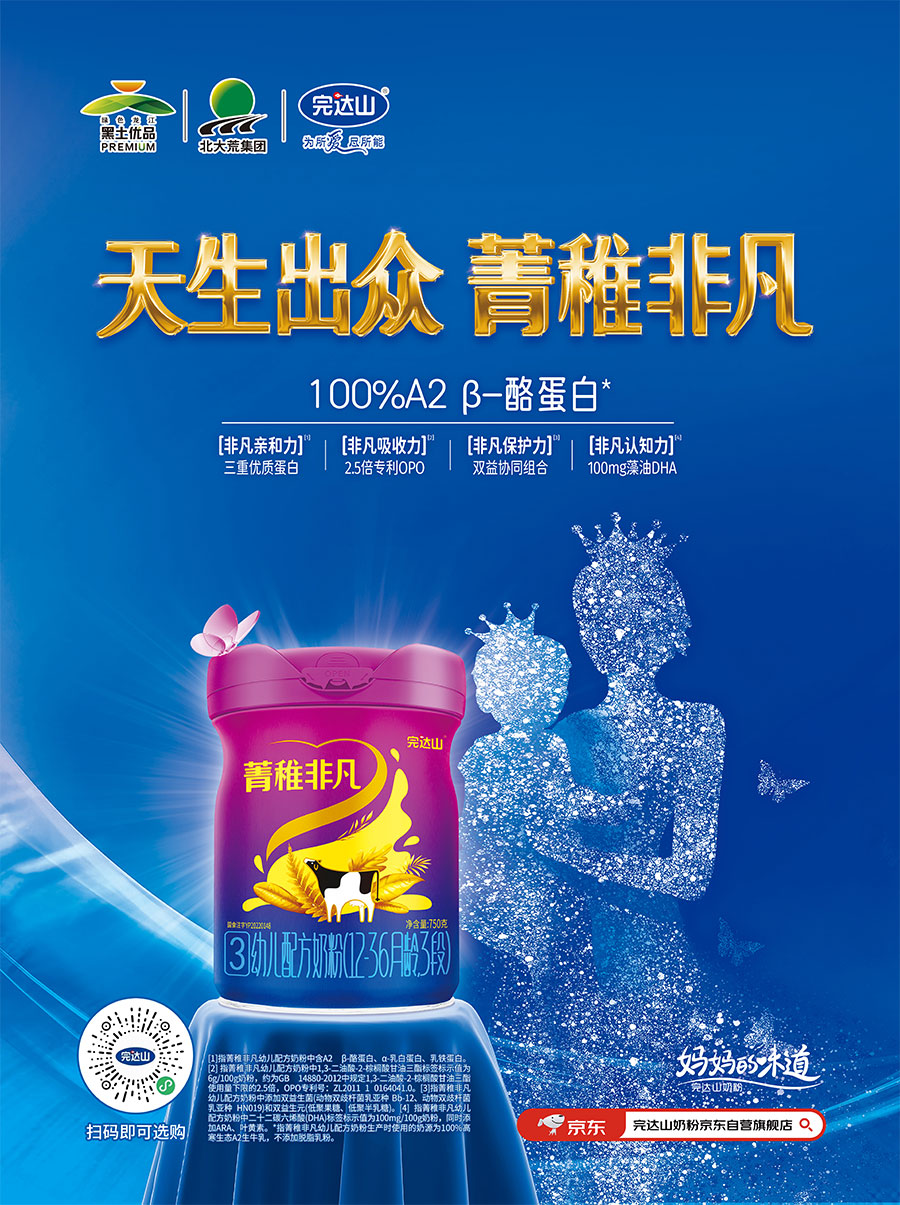 自成立以來,完達山始終傳承軍旅文化、知青文化和北大荒文化,依托“龍江沃土、黃金奶倉、生態北大荒”這一無可復制的生態資源,堅持在黑土地、養健康牛、做誠信人、產放心奶。完達山是乳品行業唯一的“中國綠色食品榮譽企業”,全國誠信體系建設首批首家乳制品試點評價通過單位,國家級農業產業化重點龍頭企業,高新技術企業,2024年完達山品牌價值達到636.86億元,連續21年登上中國500最具價值品牌榜。