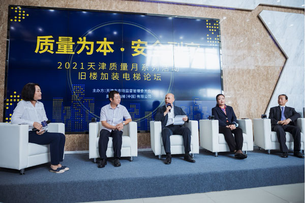 啟動儀式后,人大代表、政協委員、行業專家和業主代表等參加了由奧的斯和天津市場監管委共同主辦的舊樓加裝電梯討論,探討如何推動天津舊樓加裝,增強市民的幸福感。