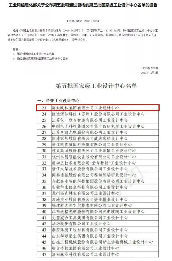 國家級!海太歐林集團喜提“國家級工業設計中心”