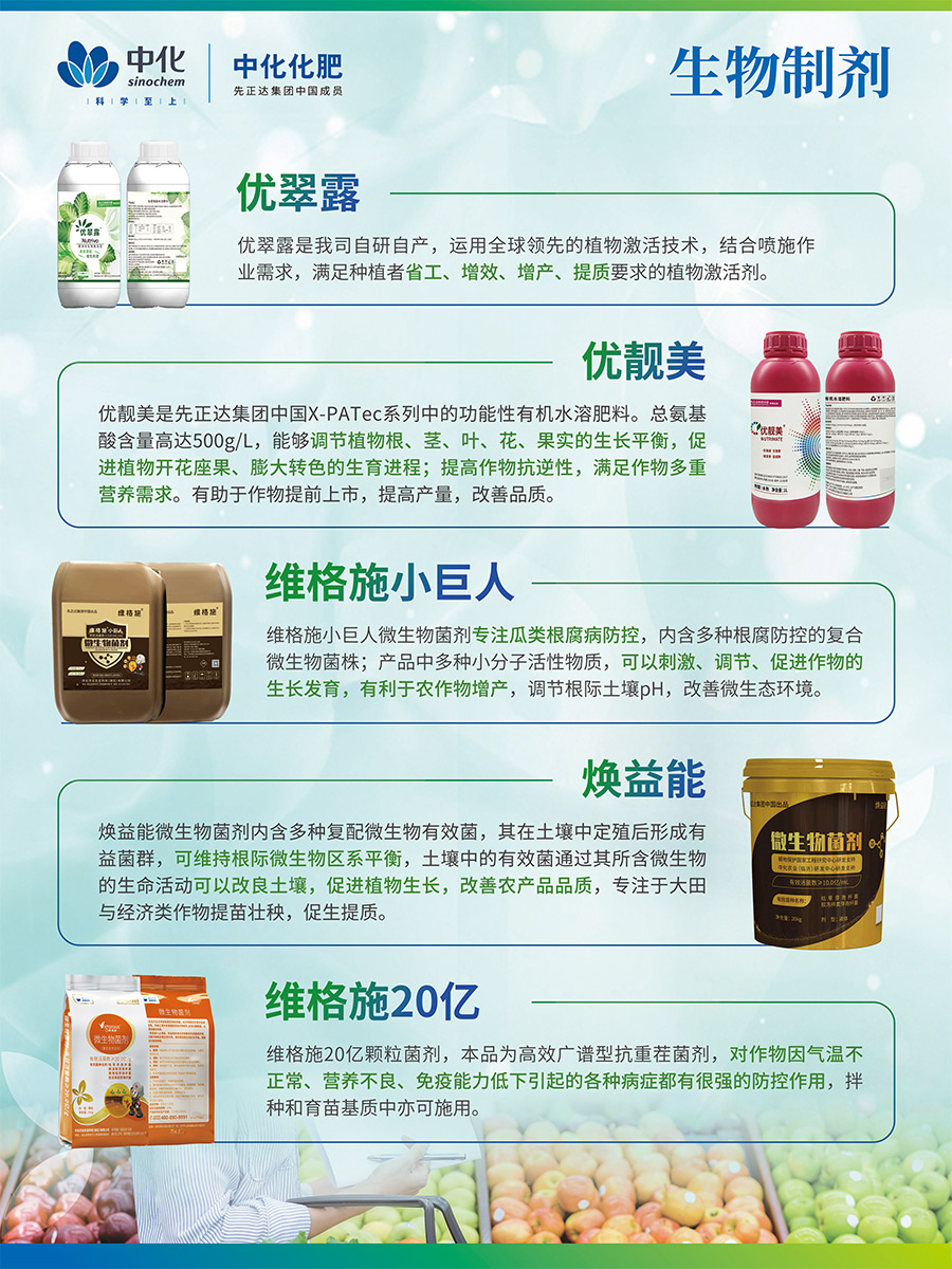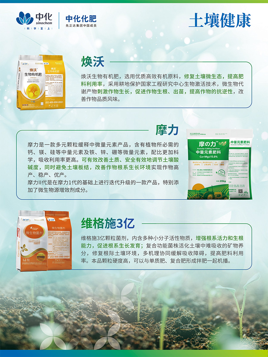美麟美、麟葆等生物磷肥由中化化肥與中國農業科學院聯合研發,中化化肥獨家經營,目前已升級為第三代產品,其“信號誘導促根”科技為全球獨創,榮獲“中國增效肥料優秀品牌“稱號藍麟是中化化肥聯合先正達研制的致力于高端經作提質抗逆的全水溶功能復合肥,是具有全水溶、速效性、長效性、增效性的尖端科技產品。