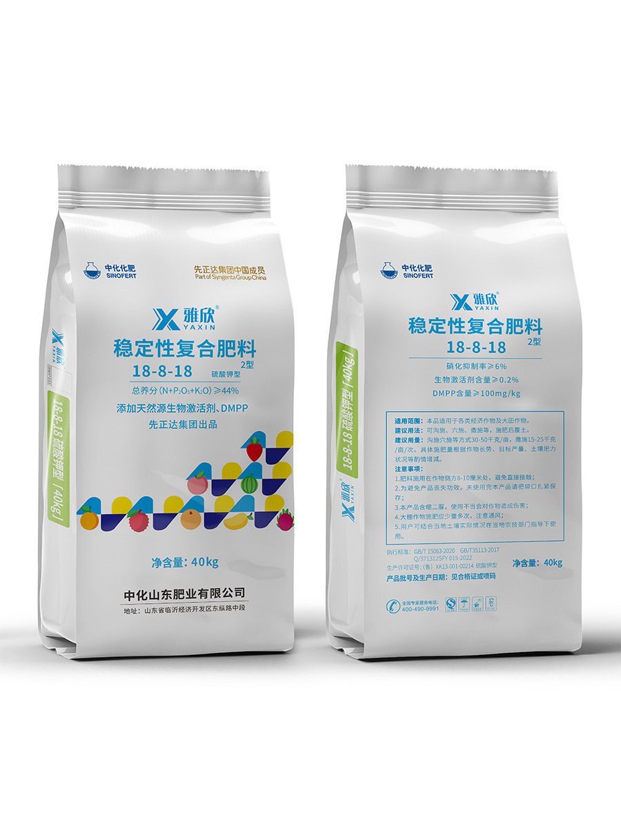 雅欣是中化化肥研發的高性價比功能性肥料,集成先正達生物激活劑“瑞科明”,開發"瑞科明+S-M50+微素+礦源黃腐酸鉀"加工工藝,實現養分與增效、緩釋的有機結合,具備18-18-18低氯、18-8-18S等多種配比復合肥產品。