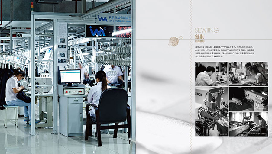 公司具備年生產粗精紡呢絨1000萬米,經營規模在全國毛紡織行業中居前五強。服裝制造:在服裝制造領域,澳洋集團擁有自主品牌“澳洋”和“沃爾芬”,生產西服、西褲、襯衫、夾克、防寒服、毛衣、工裝等全系列產品,年產中高檔職業裝150萬套、襯衫120萬件。澳洋服裝廠擁有國際最為先進的美國“格柏”CAD設計系統及自動裁床、德國“杜克普”、美國“格柏”和日本重機專業縫制設備、意大利全套“邁埤”整燙系統、加拿大“衣拿”、德國“百福”智能吊掛系統等。精紡廠的生產設備從條染、紡紗、織造、后整理和檢驗檢測設備95%從德國、意大利和日本進口。公司已發展成為國內技術裝備最先進、生產工藝最完善的精品職業服裝和面料生產基地。