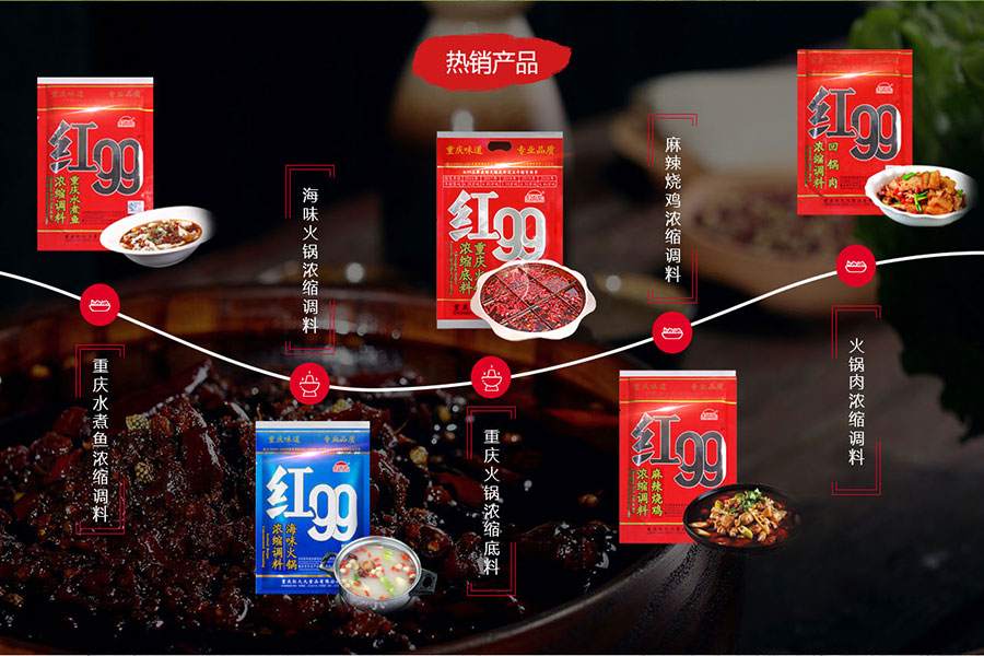 重慶紅九九食品有限公司創(chuàng)建于1993年,是一家專業(yè)生產(chǎn)紅99牌濃縮火鍋底料、濃縮調味品系列產(chǎn)品的市級農(nóng)業(yè)產(chǎn)業(yè)化重點龍頭企業(yè)。