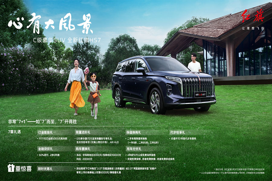 心有大風(fēng)景,胸懷大夢想,奔向新未來。“紅旗”攜手中國航天保障共擎“中國夢”的同時,將以全新紅旗HS7為代表的SUV產(chǎn)品,讓新時代有為人士與萬千和美家庭,一起得遇更大的風(fēng)景,成就祥和美滿的幸福夢。