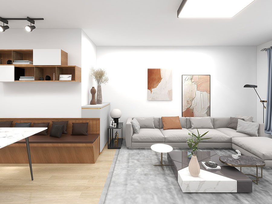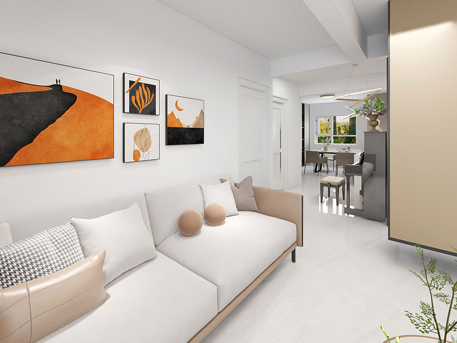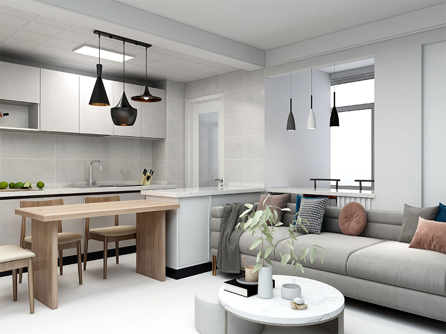 潮流設計,1v1服務:全包圓設計師為業主量身定制自由、開放、個性化的設計方案,規劃房屋格局和收納,督導施工,軟裝搭配,最終實現方案一比一落地,打造客戶滿意新家。