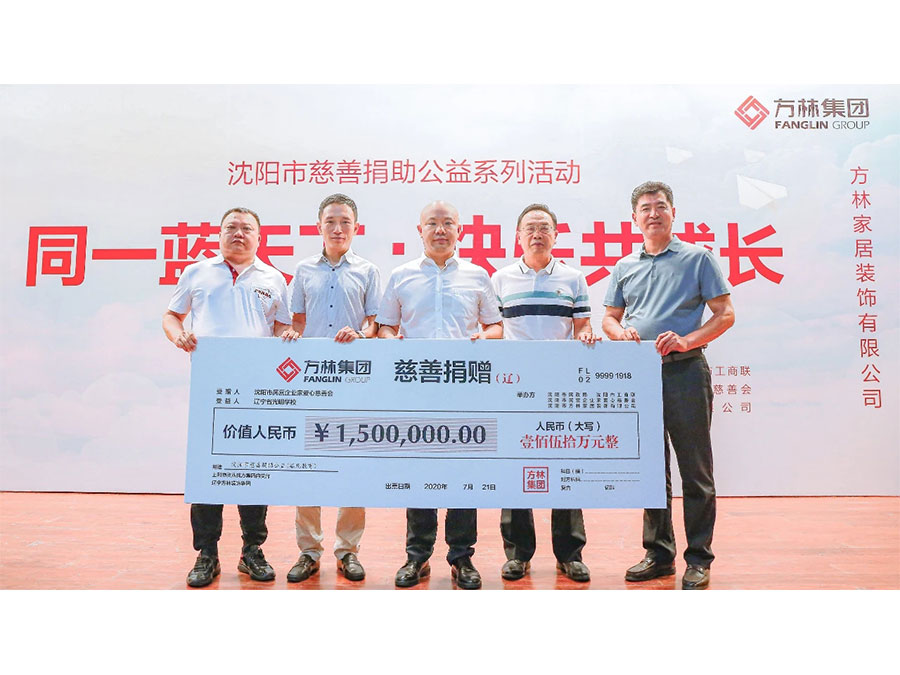 24年來,方林集團積極參與社會各項公益事業,扶危助困,愛心捐助,勇擔責任,2020年初至今,捐款共計700余萬抗擊新型冠狀病毒疫情。積極奔走,集結工程團隊,火速馳援武漢雷神山醫院建設。同時方林集團向遼寧省光明孤兒學校捐贈150萬元,向東北大學張學良基金捐贈100萬元。