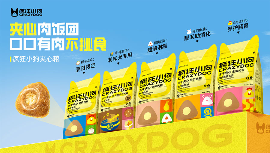 主要產品:瘋狂小狗全價犬糧、寵物零食