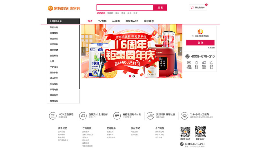 主要產品:家居用品、家用電器、服裝鞋帽、食品、美妝、珠寶首飾、收藏品、運動健康用品、家紡用品等產品