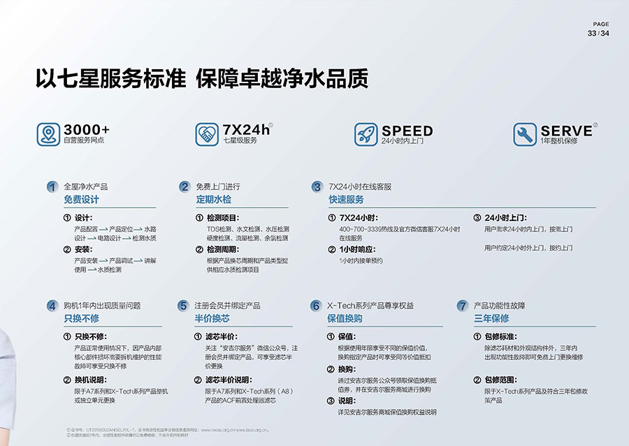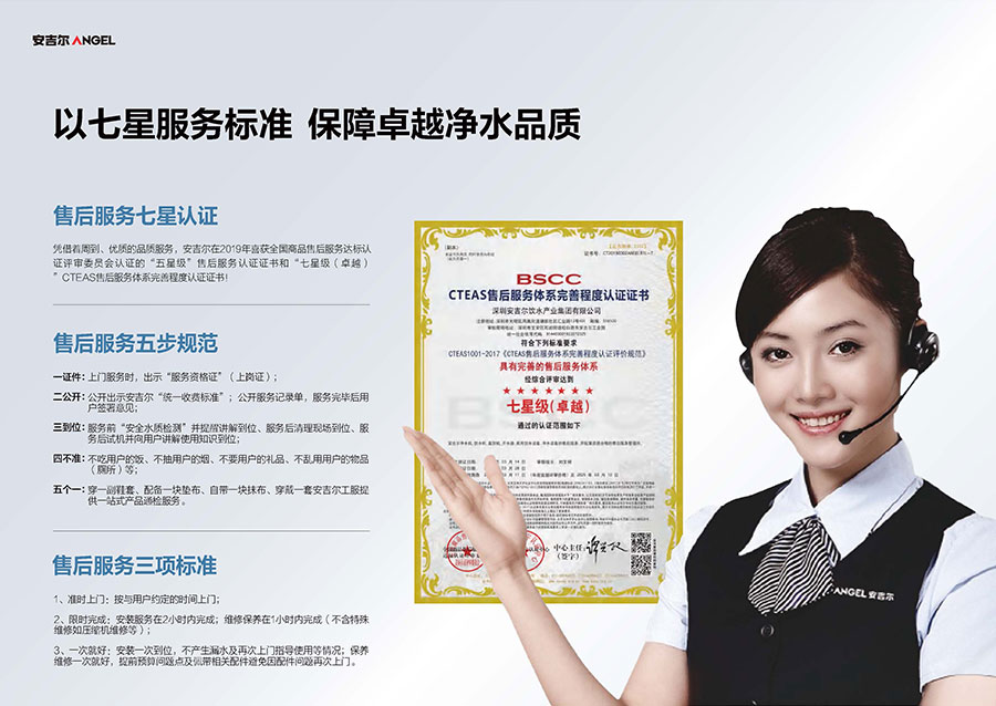安吉爾擁有高標準的七星服務體系,服務覆蓋全國區縣2900+,全年每天24小時無間斷為用戶服務,全面保障飲用水安全。