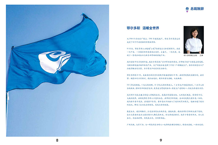 鄂爾多斯集團擁有成員企業100多家,員工4萬余人,羊絨產業和循環經濟產業兩大產業板塊,以及1436、ERDOS、鄂爾多斯1980、BLUE ERDOS、erdos KIDS 5個知名服裝品牌組成的品牌家族。站在新的發展起點上,鄂爾多斯集團將繼續以“立民族志氣,創世界名牌”為使命,遵循“科技綠色、循環發展”的經營主線,繼續發揚奮發有為、事在人為的創業精神,以更加雄厚的經濟實力,更加堅定的發展步伐、更加高遠的戰略構想,建設具有國際競爭力的幸福企業,實現“溫暖全世界”的宏偉目標。