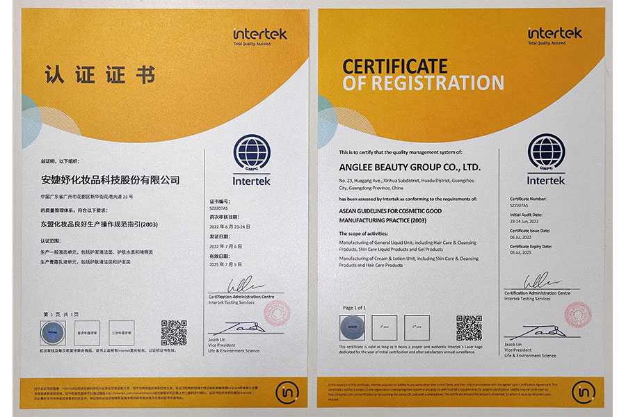 安婕妤2013年首次通過GMPC東盟認證,此后均復核通過;2019年通過GMPC美國認證;2019年通過ISO22716國際質量體系認證,擁有以歐盟GMPC標準管理建立的研發試驗中心、質量保證中心。