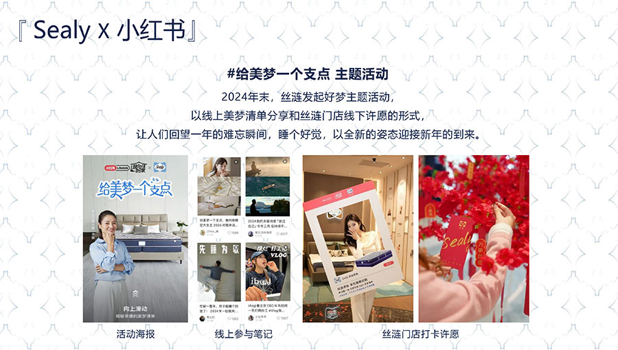 2024年末,絲漣發起好夢主題活動,以線上美夢清單分享和絲漣門店線下許愿的形式,讓人們回望一年的難忘瞬間,睡個好覺,以全新的姿態迎接新年的到來。