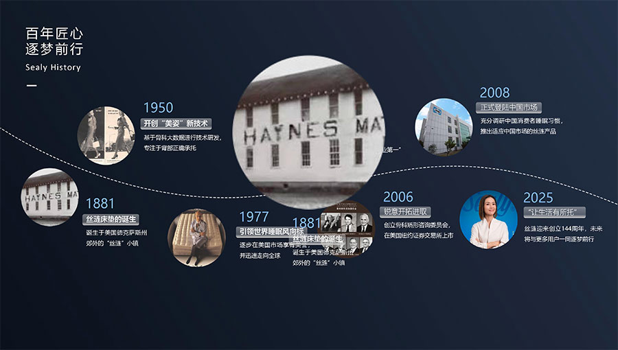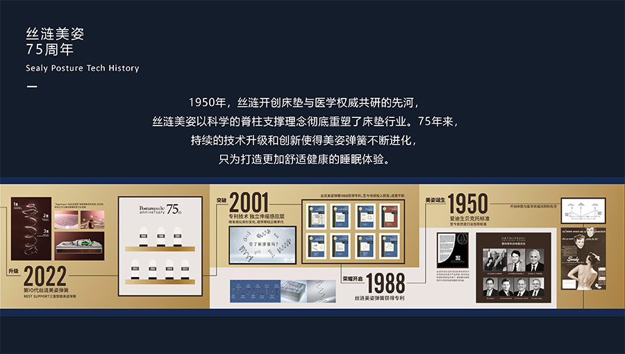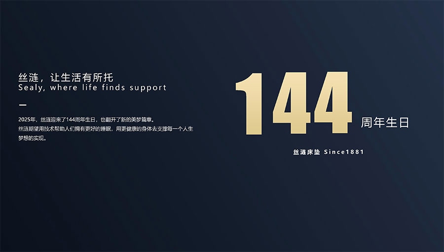 絲漣SEALY1881年誕生于美國,自1885年第一張絲漣床墊問世伊始,便憑借其卓越性能與舒適安睡體驗聲名大噪。1950年,絲漣開創床墊與醫學權威共研的先河,絲漣美姿以科學的脊柱支撐理念徹底重塑了床墊行業。75年來,持續的技術升級和創新使得美姿彈簧不斷進化,只為打造更加舒適健康的睡眠體驗。