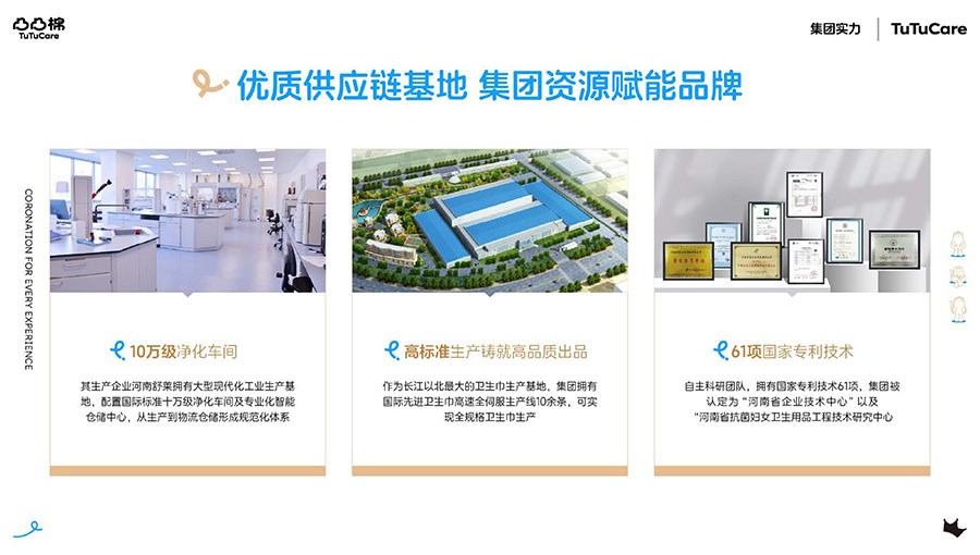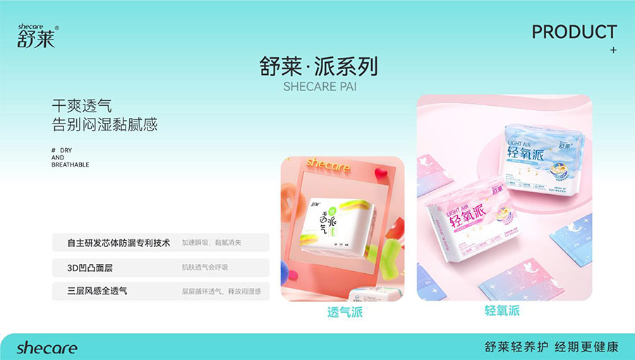 河南舒萊衛生用品有限公司旗下擁有舒萊、凸凸棉、純也、優月季等品牌,產品涵蓋衛生巾、安睡褲、護理液等品類。其中,舒萊品牌:S.H.E.CARE經期健康管理體系,從科學、健康、舒適三大維度全方位呵護女性經期健康。舒萊“輕養護”以漢方調養為根基,以科學抑護為本色,全方位調節女性經期健康指數,輕松實現經期護理;凸凸棉品牌:獨創A.C.E.CARE品質管理體系,以Air Tech干爽透氣、Comfort Tech舒適體感、Ecology Tech安全衛生為核心,打造更懂女性的護理體驗。
