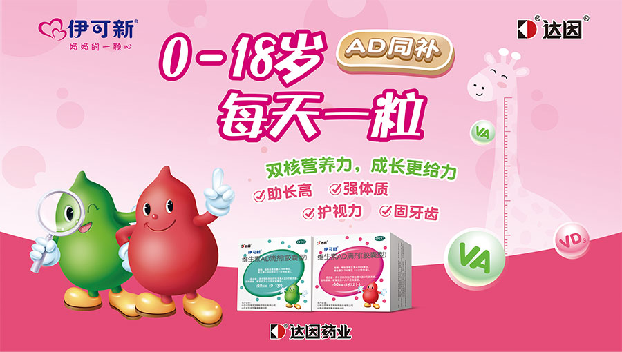 主要產品:伊可新?維生素AD滴劑(膠囊型)、達因?(復方碳酸鈣泡騰顆粒、甘草鋅顆粒、右旋糖酐鐵顆粒、鹽酸托莫西汀口服溶液、西甲硅油乳劑);伊可新?DHA藻油+ARA凝膠糖果、益生菌粉、多種維生素礦物質口服液、鈣鋅口服液、維生素A維生素D軟膠囊、鈣維生素D軟膠囊、鋅軟膠囊