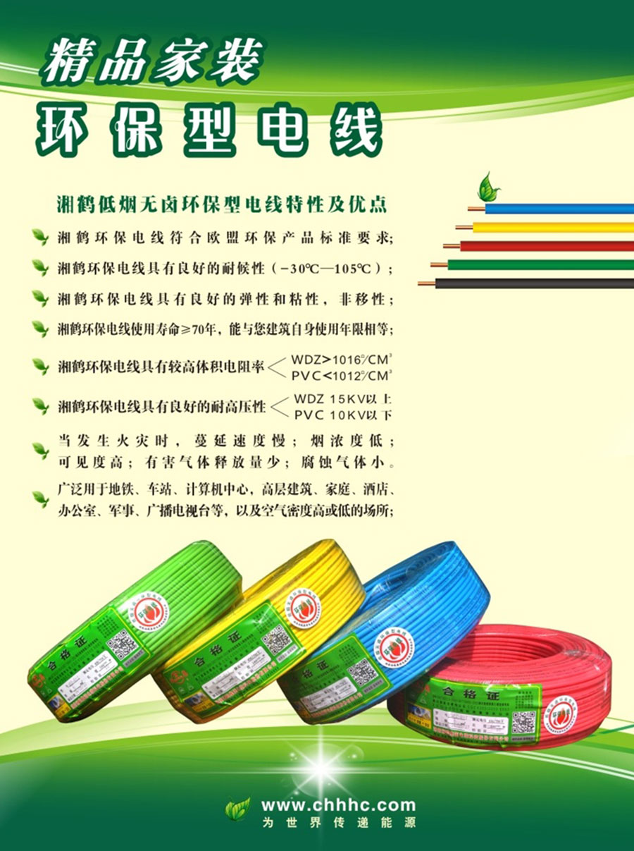 主要產品:湘鶴牌電線電纜、裝飾開關、成套設備、PPR家裝管