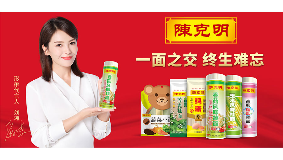 陳克明食品始終專注于中高端掛面的研發、生產及銷售,高度重視產品質量安全,采用獲得43項國家專利的制面設備和生產工藝生產的“陳克明”牌營養、強力、如愿、高筋、禮品、兒童等多個掛面規格產品推向市場,以其“柔韌、細膩、口感好,易熟、耐煮、不糊湯”的獨特品質,贏得了廣大消費者的好評。以品牌為保障,陳克明食品建立了遍布全國的完整的營銷體系,并與包括沃爾瑪、家樂福、麥德龍、大潤發、永輝等國際國內賣場在內的幾千家大、中型連鎖超市實現對接合作。同時,還在天貓、京東建立了電子商務平臺,更便捷的服務于終端消費者。“一面之交、終生難忘”,“陳克明”品牌廣告語傳遍大江南北。