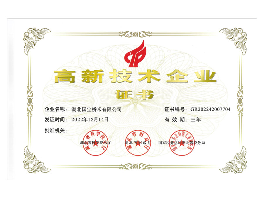 國寶橋米是高新技術企業(yè),長期與省農(nóng)科院、武漢大學、華農(nóng)、輕工大等高校院所合作,堅持橋米種子每年提純,保持橋米品種優(yōu)勢;采取綠色種植,不斷優(yōu)化生產(chǎn)工藝。運用節(jié)能型食品加工用大米清晰裝置,節(jié)能型帶雙重烘干的大米拋光機等關鍵工藝技術加工,獲得發(fā)明專利4項,實用新型專利11個,外觀專利6個。先后獲得國家科技進步二等獎1項、省科技進步二等獎1項、省科技成果推廣一等獎1項,農(nóng)牧漁豐收獎一等獎1項等。