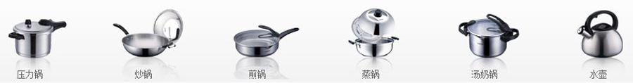 主要產品:SUPOR蘇泊爾明火(壓力鍋、炒鍋、蒸鍋、湯奶鍋、煎鍋)