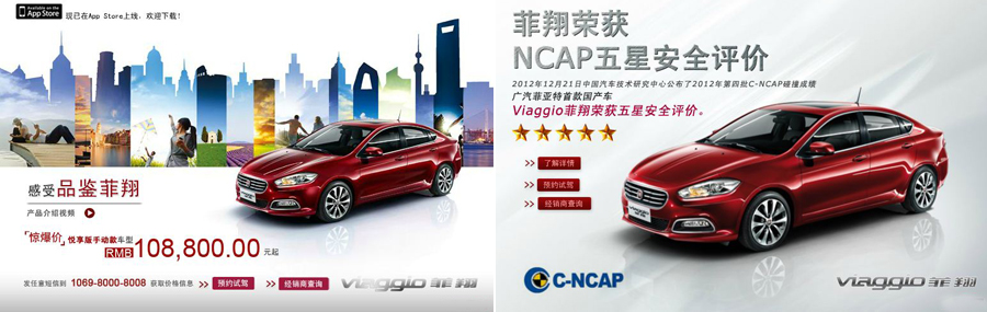 廣汽菲亞特推出的首款國產車型Viaggio菲翔是一款專為中國市場打造的意式越級動感轎車。Viaggio菲翔集意式造型、先進技術、舒適及功能、可靠安全于一身,采用了源于阿爾法·羅密歐Giulietta的菲亞特-克萊斯勒集團最新CUSW平臺進行開發,它搭載了輸出功率為120-150馬力的1.4升T-Jet渦輪增壓發動機,并配備手動變速器或先進的6速干式雙離合變速器。匯聚了菲亞特-克萊斯勒集團和廣汽集團在技術研發、產品布局、生產制造、市場推廣、渠道拓展、品牌策略等方面的全球優勢資源,以及廣汽菲亞特長沙WCM世界級工廠精湛工藝,Viaggio菲翔的上市將有望重塑中國中級車市場新格局。
