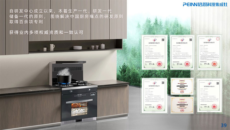 主要產品:培恩牌集成灶、煙機、灶具、水槽式洗碗機、消毒柜、櫥柜、凈水器、燃氣熱水器等廚房電器