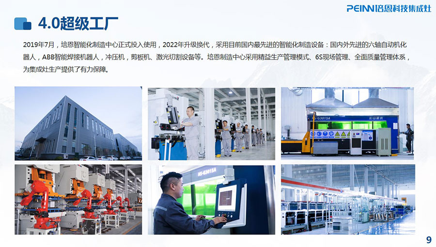 合肥培恩電器有限公司成立于2015年,于2019年入駐新工業園,是品質廚房倡導者,是專業的廚房電器品牌和廚房系統解決方案的供應商。培恩電器產品集群涵蓋集成灶、烤箱、蒸箱、消毒柜、集成水槽、洗碗機、凈水器等多款產品。