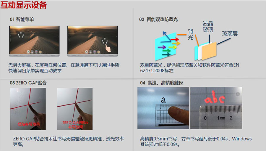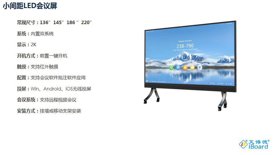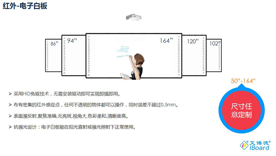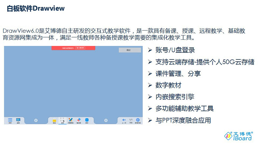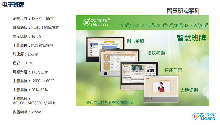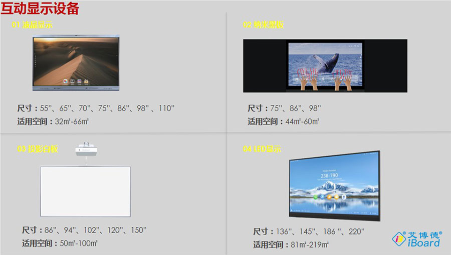 主要產品:“艾博德”交互式電子白板、交互式觸摸一體機、會議一體機、交互式電子白板一體機、交互式觸摸框、互動教學軟件、智慧教育解決方案、激光投影機、多媒體一體機、智慧班牌、交互式觸摸顯示器(納米黑板)、DrawView PAD、eChart、鯤鵬遙控、大小屏幕互動