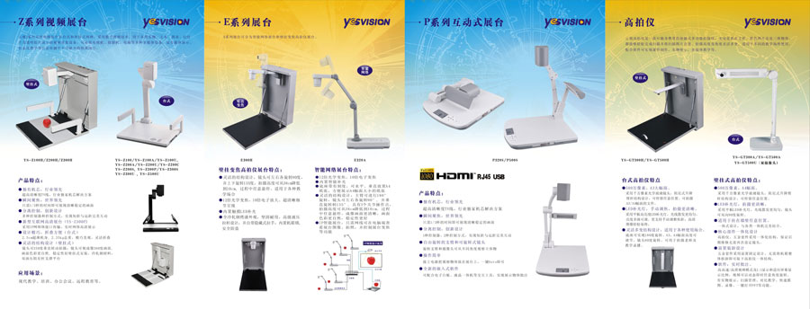 主要產品:云視牌高清實物展臺、高拍儀、交互式電子白板、智能終端一體機、高清攝像機、音箱