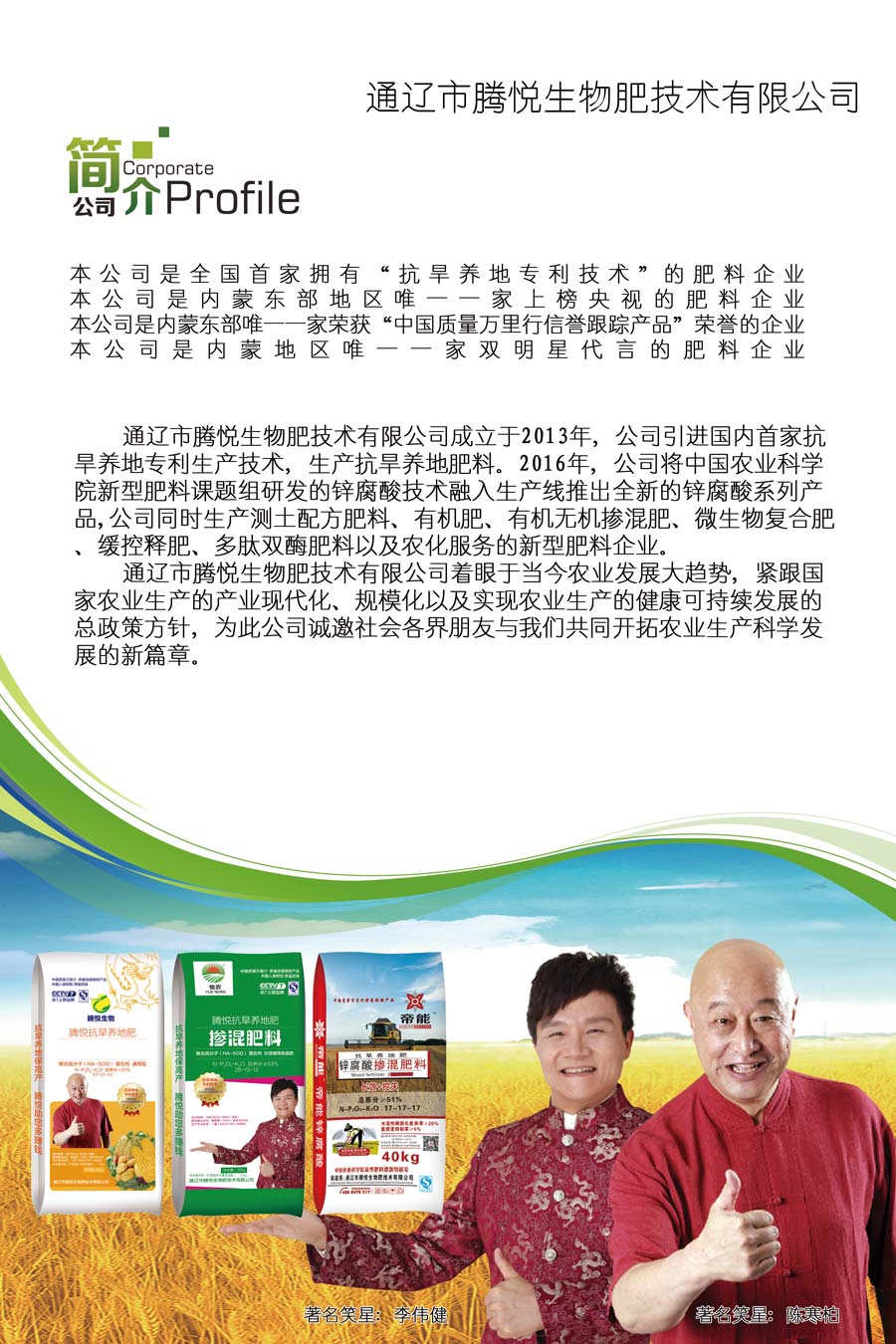 ※ 企業是內蒙地區唯一一家雙明星代言的肥料企業。