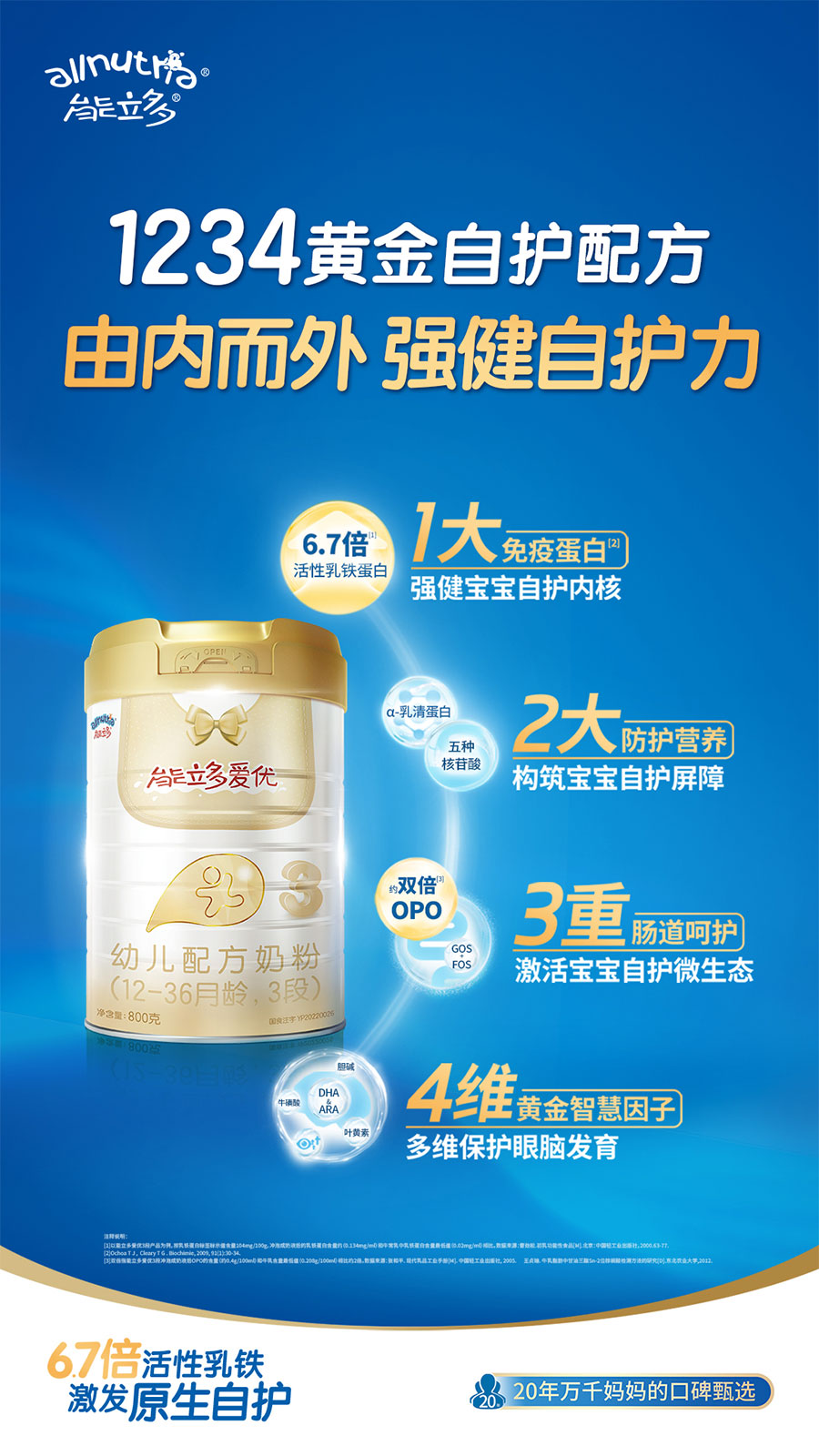澳優以“全球營養 呵護成長”為企業使命,以消費需求為中心,持續拓展產品矩陣,已形成覆蓋嬰配奶粉、保健食品、特醫食品、個性化營養品及服務的全生命周期呵護體系,正朝著“成為全球最受信賴的配方奶粉和營養健康公司”的愿景穩步邁進。