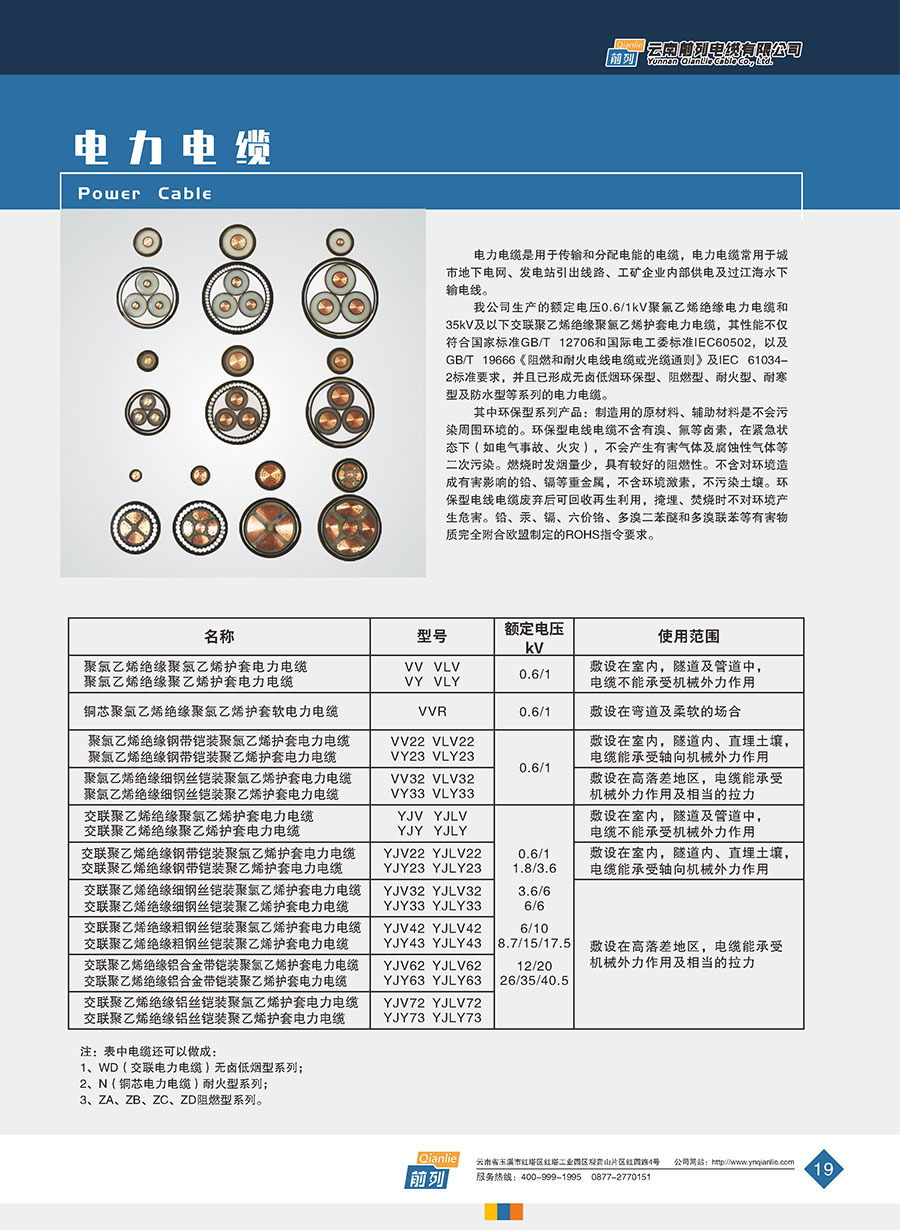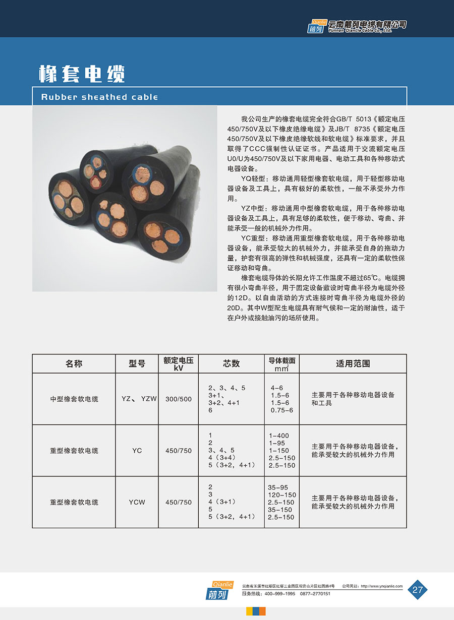 主要產品:前列電線電纜