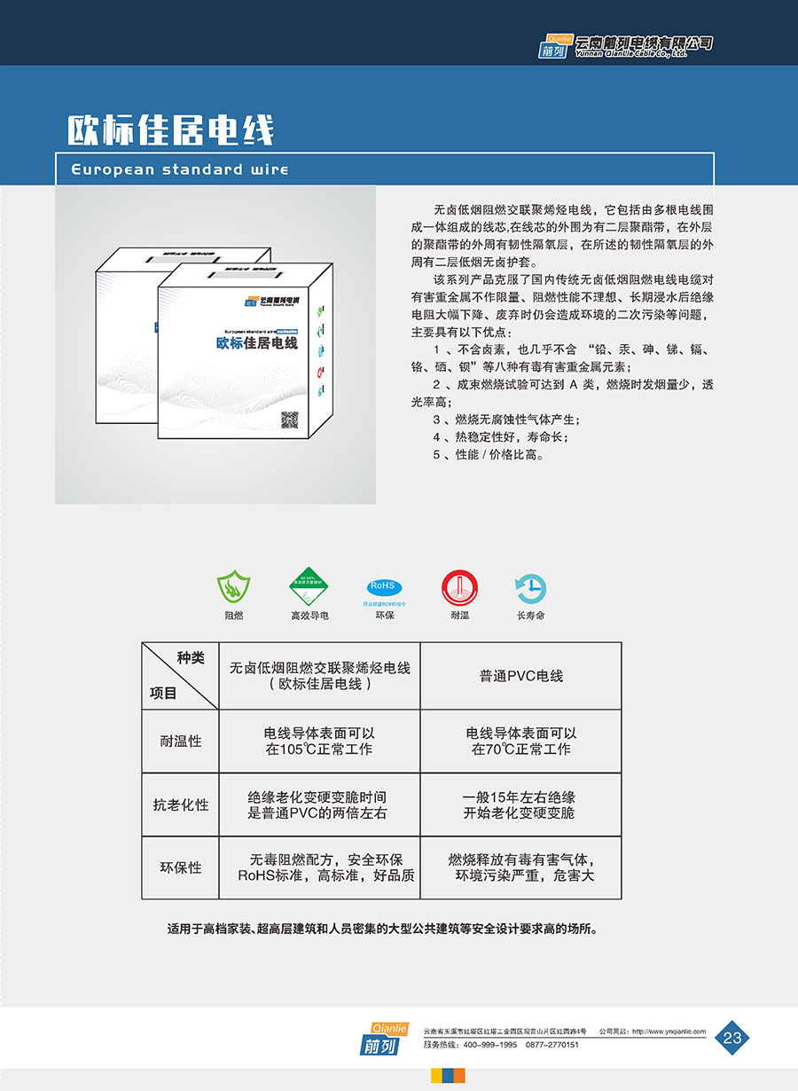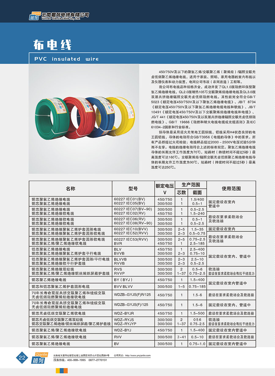 企業產品有裸銅/鋁絞線、鋼芯鋁絞線、1-35kV交聯聚乙烯絕緣電力電纜、0.6/1kV聚氯乙烯絕緣電力電纜、聚氯乙烯和交聯聚乙烯絕緣控制電纜、高端家裝線、防火電纜以及各種特種高溫低煙無鹵型耐火阻燃型電線電纜。