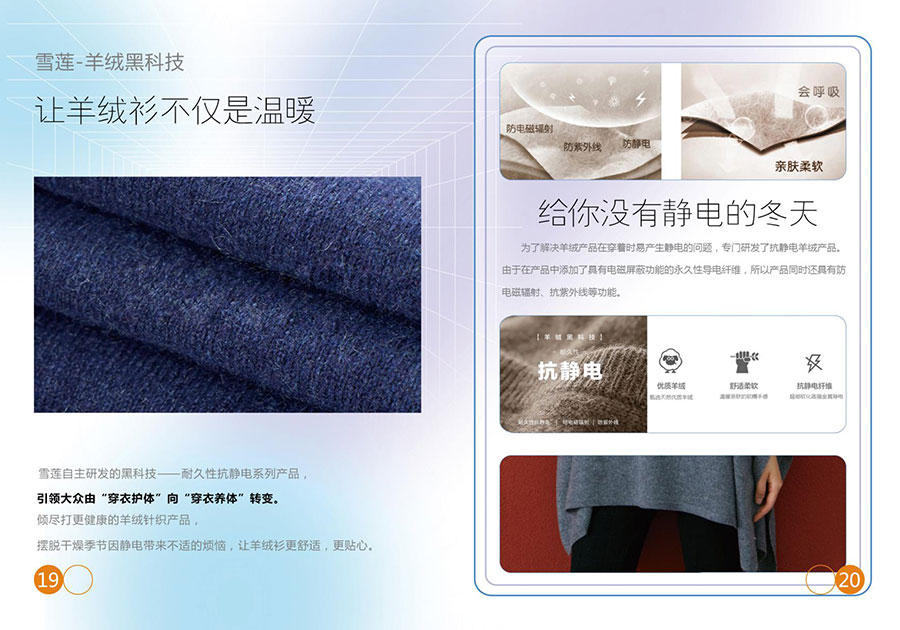 依托雪蓮品牌成熟的羊絨加工技術和設計研發能力,選用國際領先的設備-英國泰德漢(TATHAM)梳毛機、意大利比伽利(BIGAGLI)紡紗機、德國斯托爾(STOLL)電腦橫機,年產能羊絨紗線300噸、羊絨制品30萬件。羊絨產品包括山羊類分梳絨、羊絨紗線(20-32/2NM)、羊絨衫、服裝、圍巾、帽子、手套、披肩、羊絨毯及針織品等系列產品。