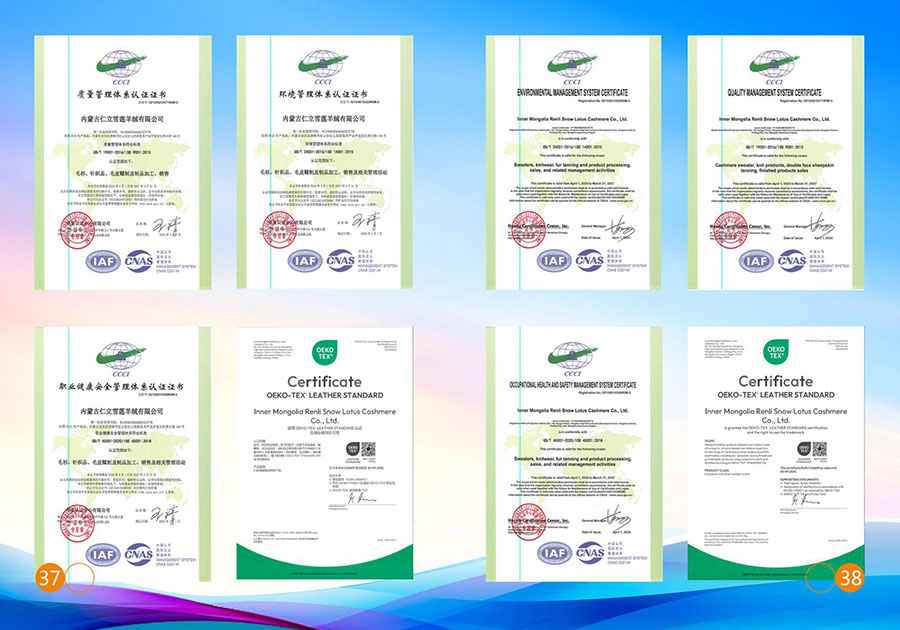 仁立雪蓮公司堅持可持續發展戰略,通過了瑞士OEKO-TEX認證,ISO9001質量管理體系認證、ISO14001環境管理體系認證及ISO45001職業健康安全管理體系認證,推進該公司不斷向節能型、循環型企業方向發展,通過創新降低能源消耗、減少污染排放,保護生態環境,建立健全綠色低碳循環發展的經濟體系。