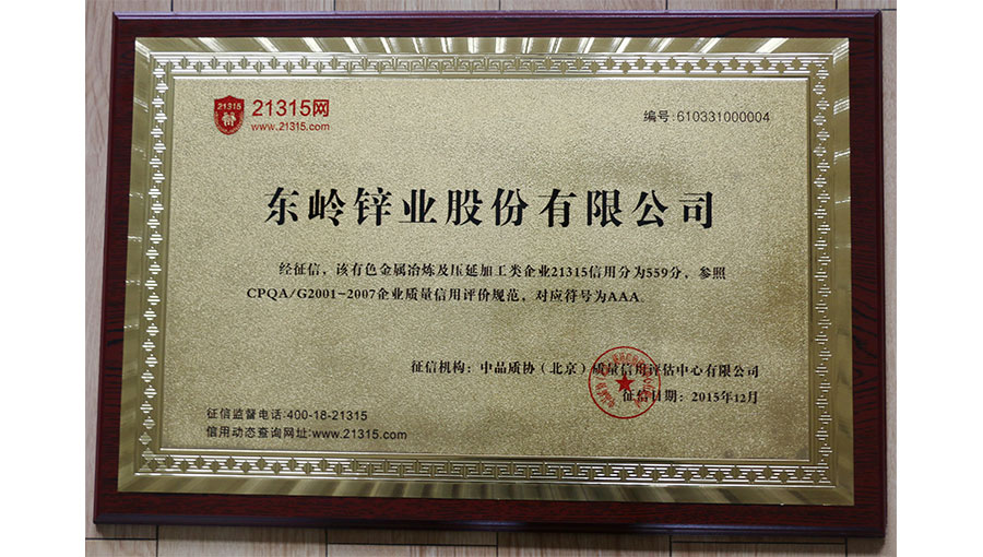主產(chǎn)品“東嶺牌”鋅錠榮獲“中國有色金屬實物質(zhì)量金杯獎”、“用戶滿意產(chǎn)品”。