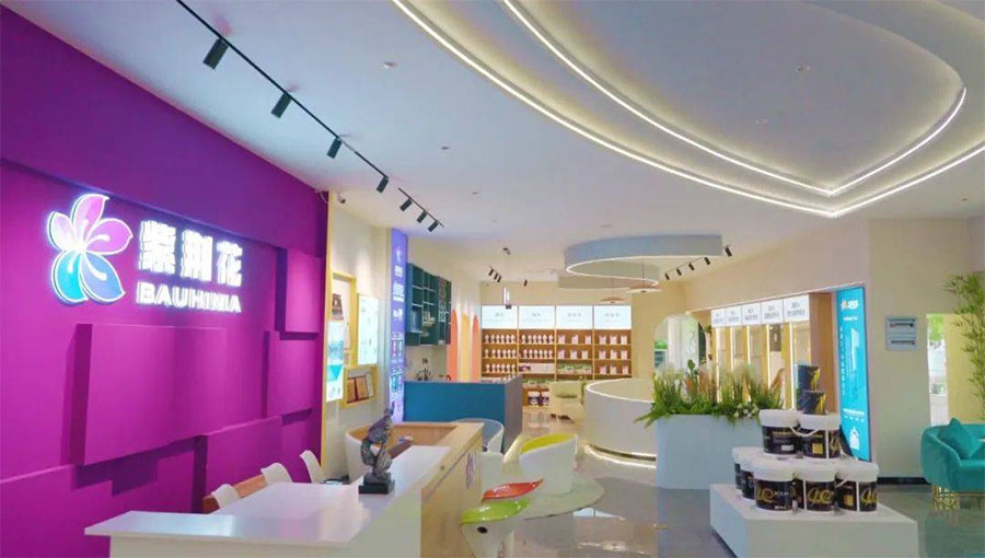 40多年來,紫荊花品牌的專賣店及分銷網絡遍布中國大陸及港澳臺地區,截止目前,家裝涂料在全國擁有超過2600個專賣店及超過10000家分銷網點,服務了數以千萬計的家庭及專業用戶。一大批諸如北京人民大會堂、釣魚臺國賓館、香港禮賓府、香港紅磡體育館、香港啟德機場、上海世博會澳大利亞館、世博會中國鐵路館、上海浦東國際機場、福建漳州核電站等重大工程項目,見證了紫荊花的卓越匠心品質。工程涂料服務客戶包括中建、中鐵、中交、中核、中冶、中能、保利、華潤等大型央國企及百強地產開發商;工業涂料產品廣泛應用于家具廠、玩具生產商及3C電子、航運重工、電力橋梁、石油石化等行業,包括歐派、美泰、孩之寶、迪士尼、麥當勞、索尼、馬士基、中車、中集、中石油、中石化、海螺集團等知名品牌。