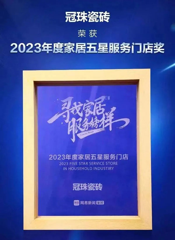 奪冠!冠珠瓷磚榮獲2023“年度家居行業服務榜樣”、“年度家居五星服務門店獎”